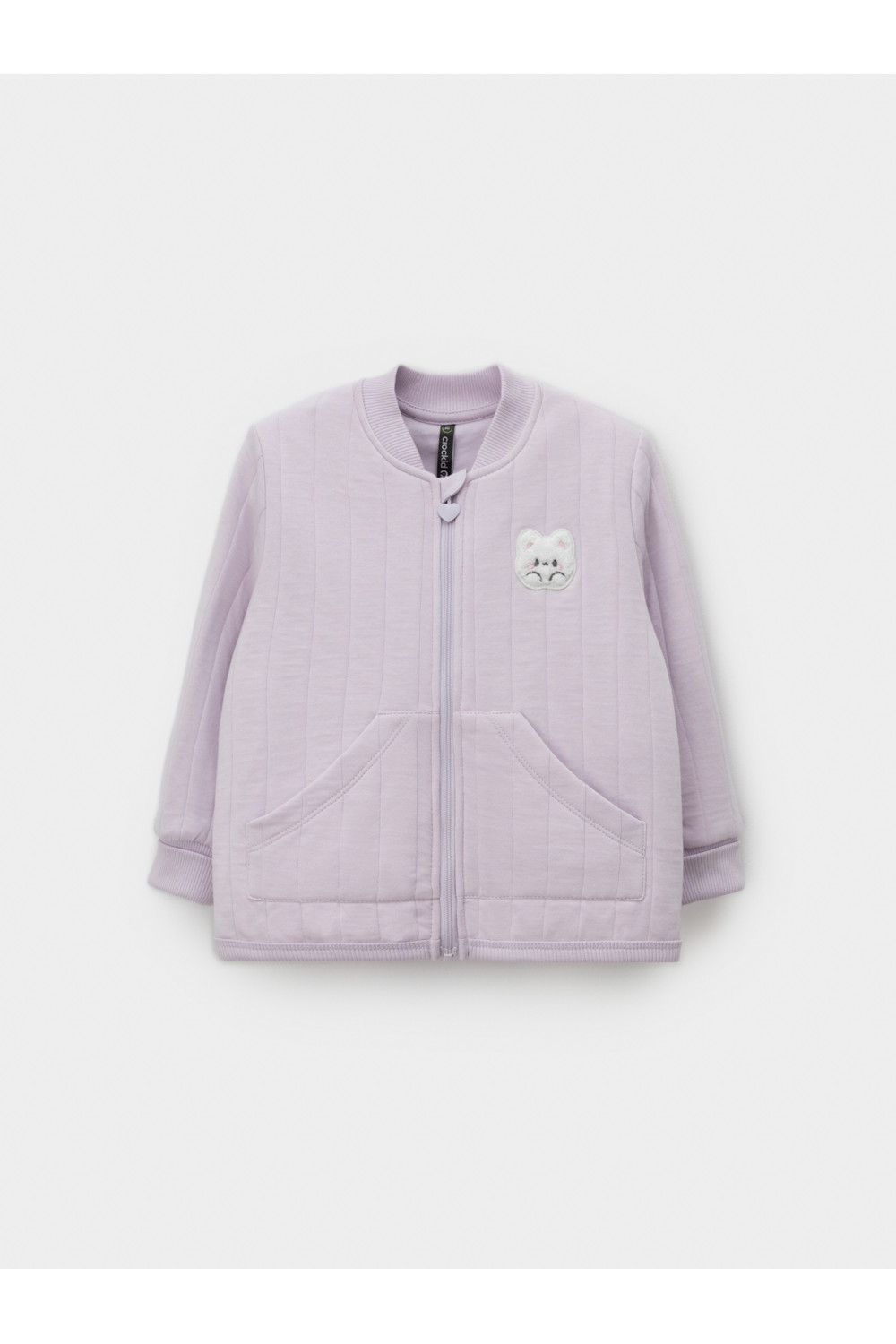 Тёплая куртка из капитония для девочки. Капитоний — это стёганое трикотажное полотно с утеплителем из полиэстеровой нити. Изделие застёгивается на молнию с мягкой защитой шеи и подбородка. Эластичные манжеты на рукавах. Спереди два кармана. Все трикотажные полотна производятся в соответствии с нормами швейцарского сертификата ЭкоТекс.