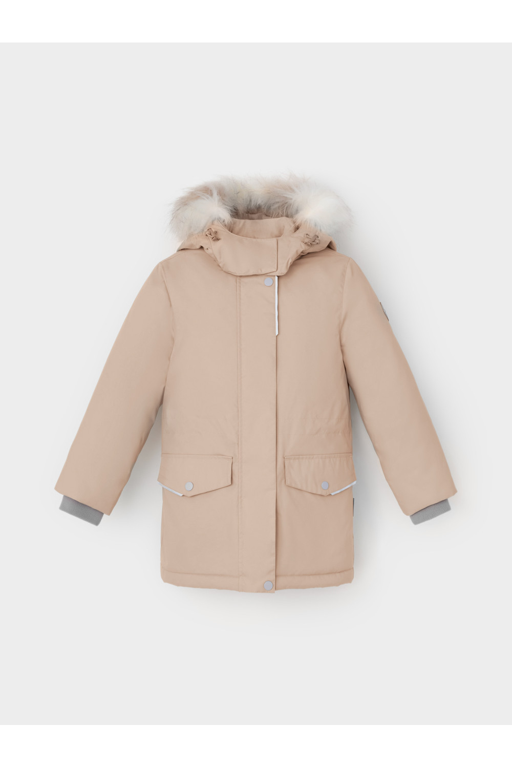 Зимняя куртка для девочки с утеплителем SEE®: 250 г/м2. Выполнена из мембранной ткани с дополнительной тефлоновой обработкой, которая предохраняет изделие от загрязнений и отталкивает влагу. Подклад выполнен из 100% полиэстера Tricot. Куртка застёгивается на молнию, предусмотрена защита подбородка. Съёмный капюшон на кнопках и липучках имеет отстёгивающийся искусственный мех на молнии и эластичную утяжку со стопперами. На рукавах мягкие внутренние манжеты. По бокам два кармана с клапанами на кнопках. Изнутри кулиска по талии для регулировки ширины куртки. Во всех изделиях верхнего ассортимента для безопасности ребёнка предусмотрены светоотражающие элементы.