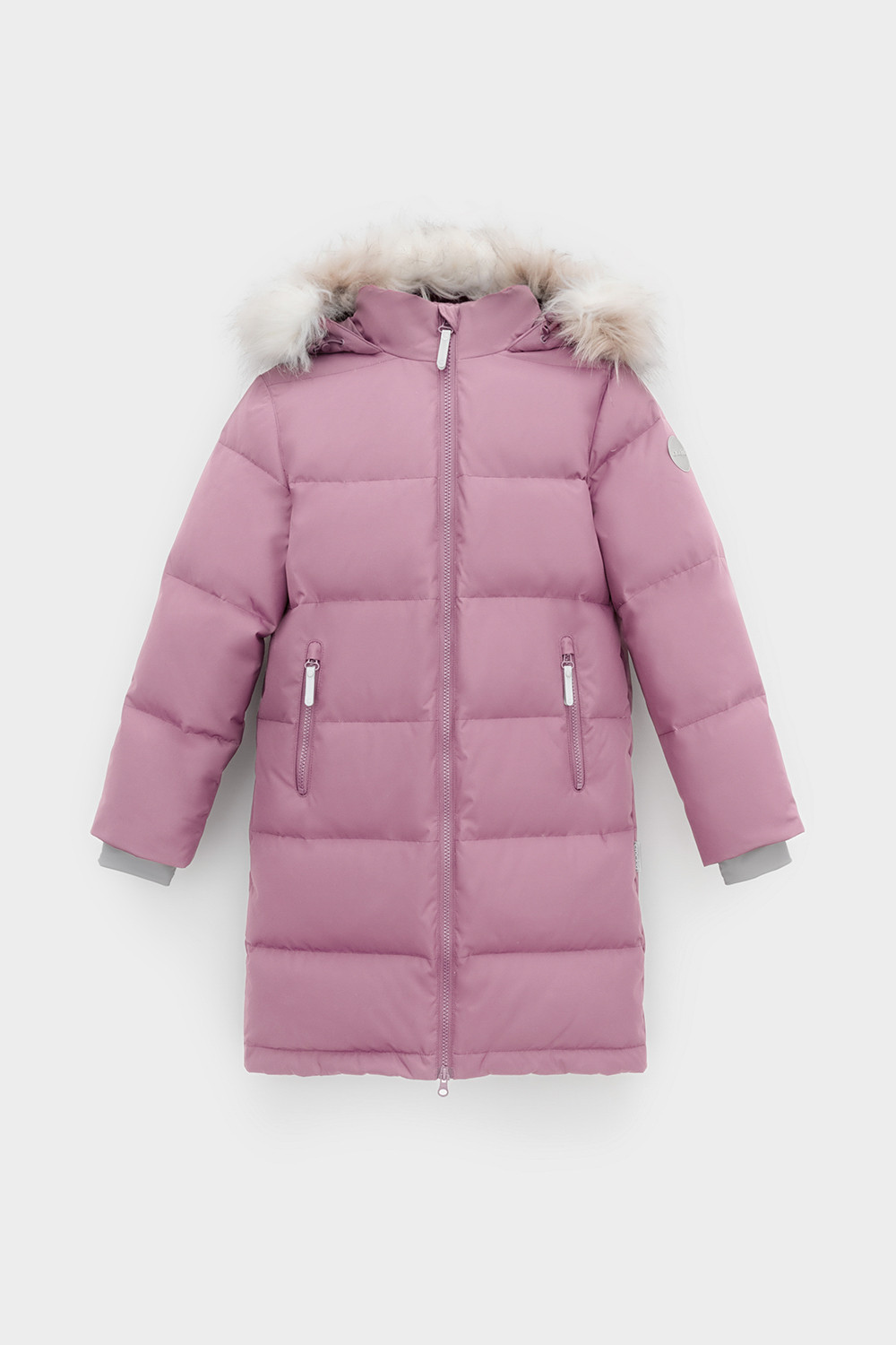 Пальто для девочки с натуральным утеплителем из гипоаллергенного гусиного пуха (70%) и пера (30%).