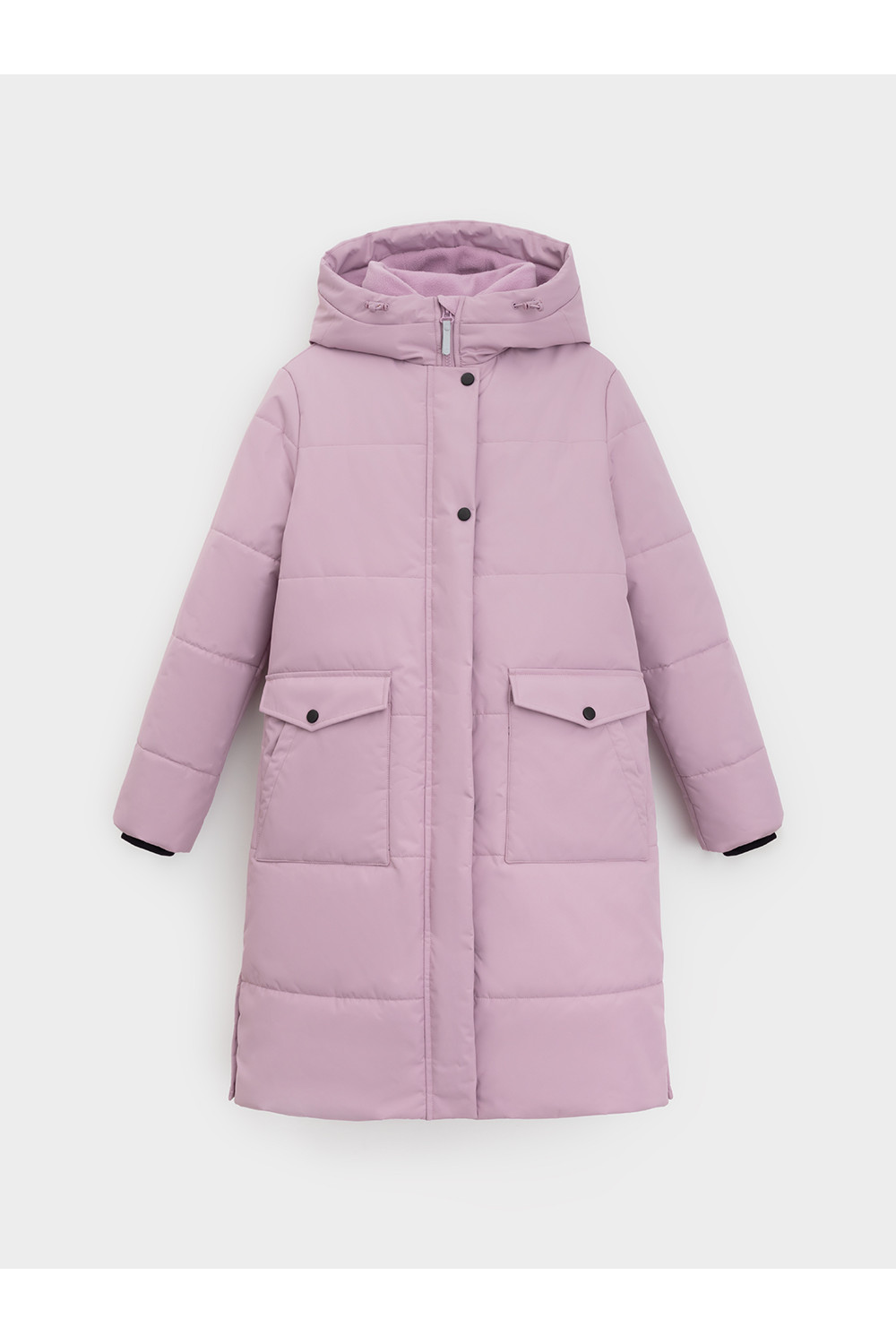 Зимнее пальто для девочки с утеплителем Слайтекс®: 300 г/м2. Выполнено из мембранной ткани с дополнительной тефлоновой обработкой, которая предохраняет изделие от загрязнений и отталкивает влагу. Подклад выполнен из 100% полиэстера Tricot. Пальто застёгивается на молнию, предусмотрена защита подбородка. Вшитый капюшон имеет эластичную утяжку со стопперами по бокам. На рукавах мягкие манжеты. По бокам два кармана с клапанами, два кармана на груди и один внутренний на молнии. По талии эластичная утяжка со стопперами для регулировки ширины пальто. Во всех изделиях верхнего ассортимента для безопасности ребёнка предусмотрены светоотражающие элементы.