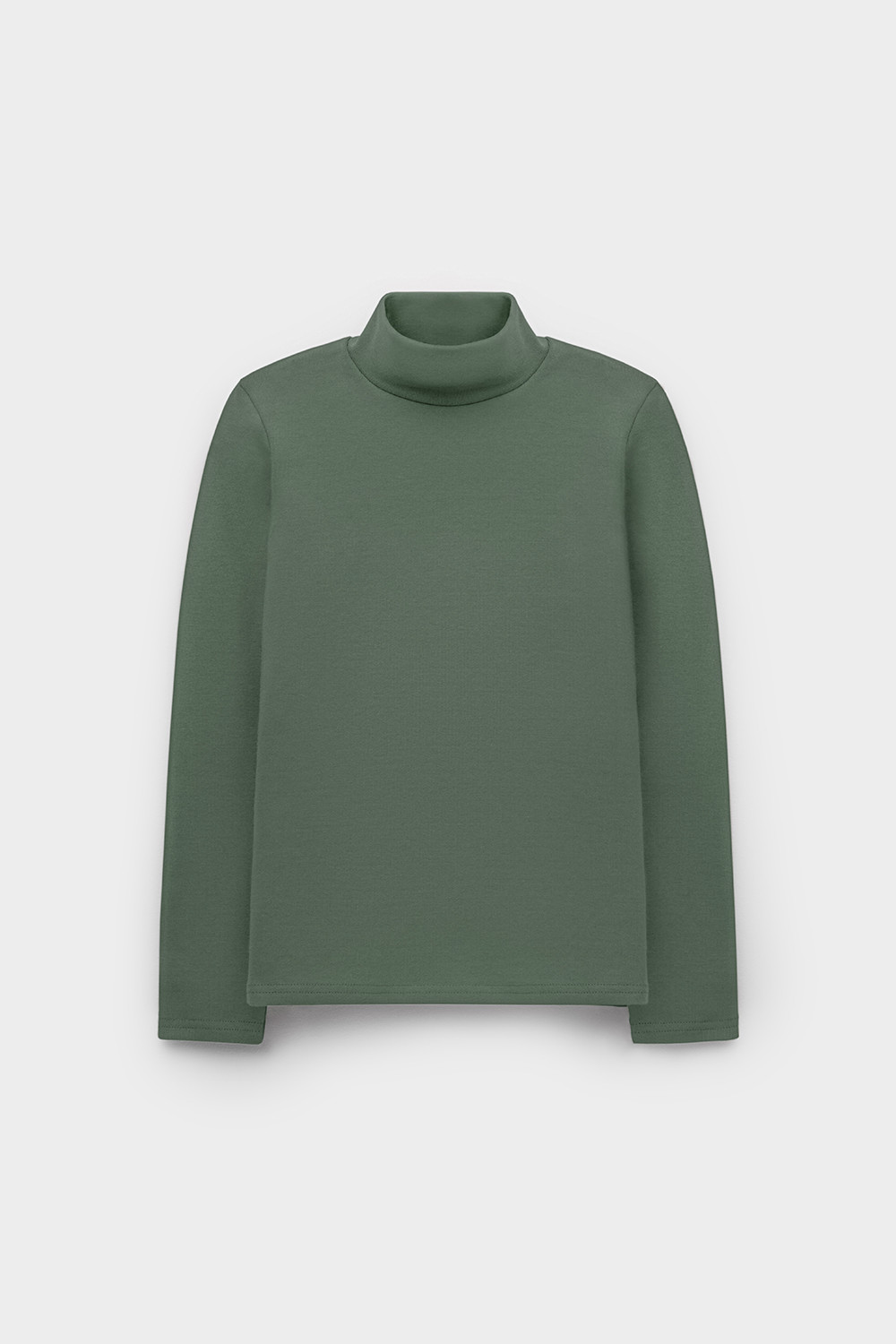 Однотонная водолазка с высоким воротником-стойкой и длинными рукавами. Выполнена из высококачественной эластичной рибаны с начёсом. Эластан в составе позволяет изделию быть более эластичным и дольше сохранять форму. Воротник защищает горло от прохладного воздуха.