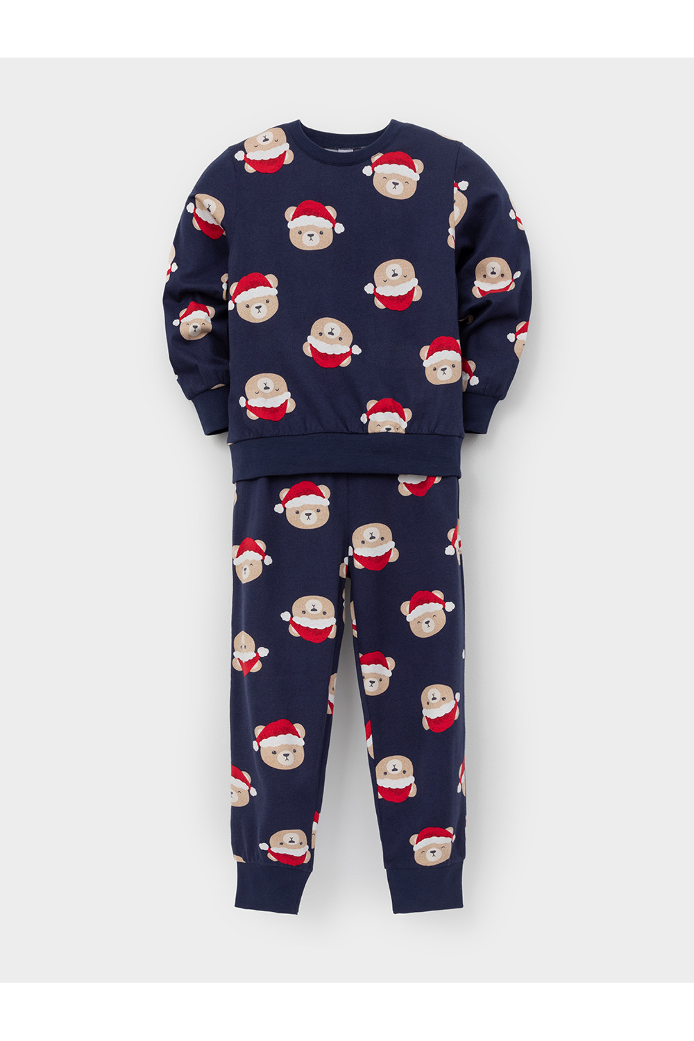 Новогодняя пижама из натурального хлопка. Джемпер с длинными втачными рукавами и брюки с эластичной резинкой в поясе. Мягкие манжеты на рукавах и по низу брюк. Пижама отлично подойдёт для создания уютных домашних образов или в качестве подарка на Новый год и Рождество. Оригинальная набивка выполнена из стойких текстильных гипоаллергенных красителей. Изделие сохраняет цвет и форму после многократных стирок. Все трикотажные полотна производятся в соответствии с нормами швейцарского сертификата ЭкоТекс.