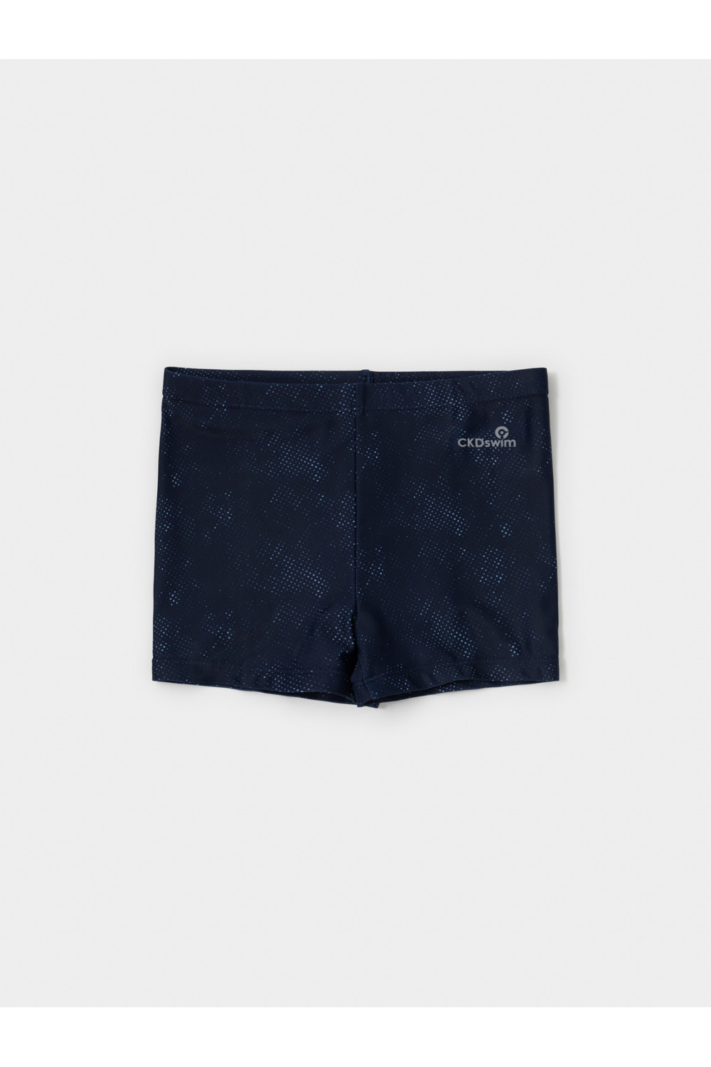 Плавки для мальчика с эластичной резинкой в поясе. Регулируются по ширине с помощью шнурка. Спереди подклад. Украшены принтом с логотипом.