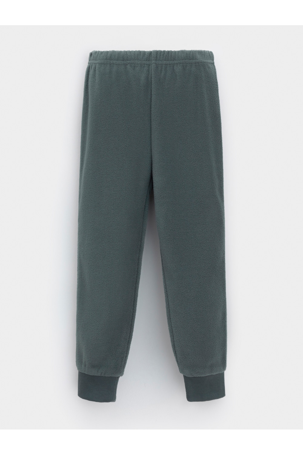Однотонные детские брюки из флиса с поясом на резинке. Низ изделия на манжетах из эластичного трикотажа в рубчик. Брюки сохраняют цвет и форму после многократных стирок.