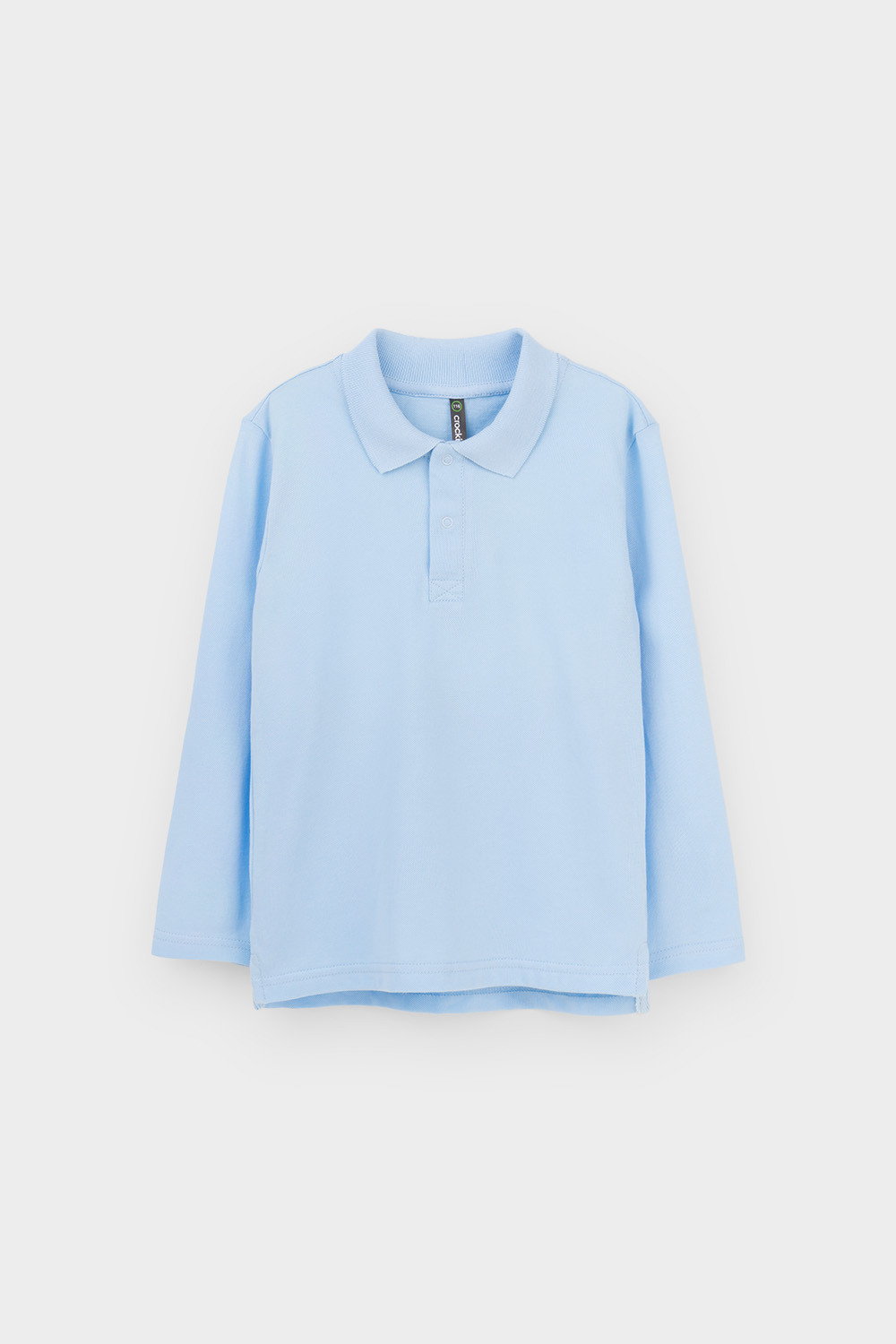 Джемпер поло с длинными рукавами для мальчика из трикотажного  полотна пике. Вязаный воротник. Удобная застежка спереди. По бокам разрезы, обработанные киперной лентой.