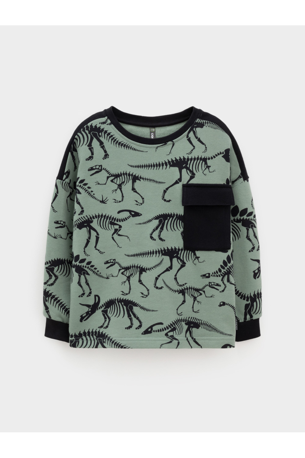 Свитшот для мальчика из высококачественного петельчатого футера. Обтачка горловины и манжеты выполнены из эластичного полотна. Для удобства одевания имеется застёжка на кнопки в размерах 92 и 98. Оригинальный рисунок нанесён с помощью стойких текстильных гипоаллергенных красителей.