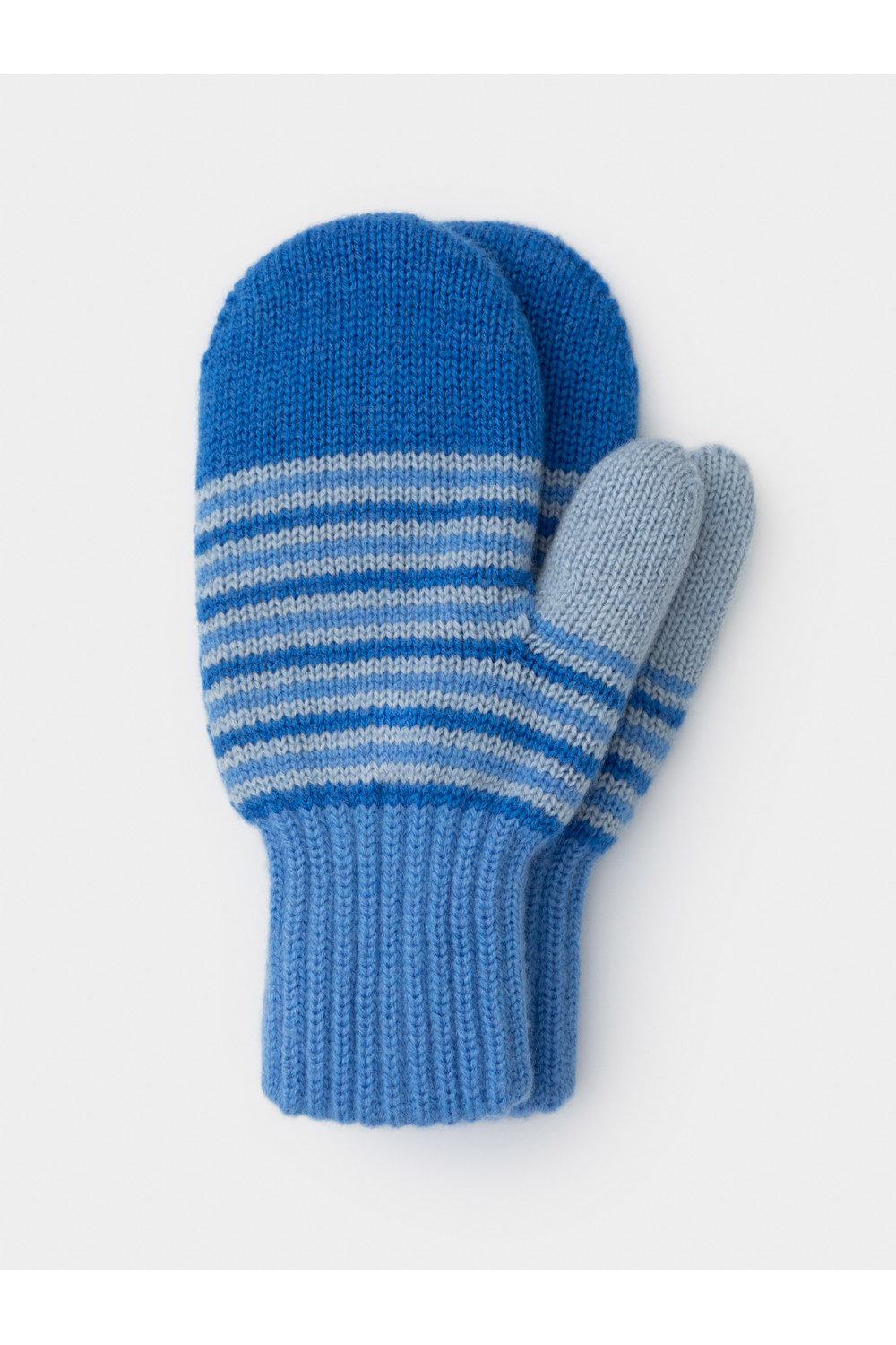 Варежки в полоску из полушерстяной пряжи. Эластичные манжеты фиксируют перчатку на руке.