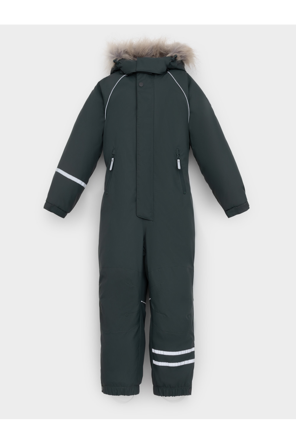 Зимний комбинезон для мальчика с утеплителем Fellex®: 250 г/м2 . Выполнен из мембранной ткани с дополнительной тефлоновой обработкой, которая предохраняет изделие от загрязнений и отталкивает влагу. Подклад выполнен из 100% полиэстера Tricot. Комбинезон застёгивается на молнию и внешнюю планку на липучках и кнопках, предусмотрена защита подбородка. Съёмный капюшон имеет эластичную утяжку со стопперами и отстёгивающийся мех на молнии. Резинка по спинке обеспечивает лучшее прилегание. По бокам два кармана на молнии. Эластичные манжеты на рукавах регулируются по ширине с помощью липучки, по низу изделия - с помощью кнопки. Внутренняя противоснежная юбка защищает обувь от попадания снега и удерживает комбинезон в закреплённом положении. В размерах с 98-104 по 116-122 предусмотрены отстёгивающиеся штрипки. Во всех изделиях верхнего ассортимента для безопасности ребёнка предусмотрены светоотражающие элементы.