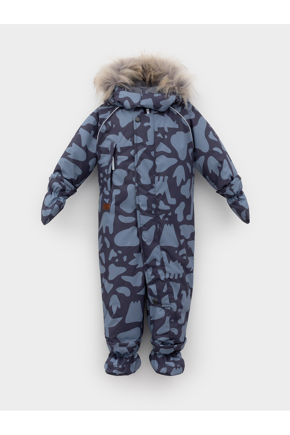 Зимний комбинезон ясельный с утеплителем SEE®: 300 г/м2. Выполнен из мембранной ткани с дополнительной тефлоновой обработкой, которая предохраняет изделие от загрязнений и отталкивает влагу. Подклад выполнен из 100% хлопка. Комбинезон застёгивается на молнию и внешнюю планку на липучках, предусмотрена защита подбородка. Несъёмный капюшон имеет эластичную утяжку со стопперами и отстёгивающийся мех на молнии. Резинка по спинке для лучшего прилегания. На груди карман на молнии. По рукавам и низу изделия эластичные манжеты, на ножках отстёгивающиеся силиконовые штрипки. В размерах 74-80 и 80-86 в комплекте идут рукавицы и пинетки. Во всех изделиях верхнего ассортимента для безопасности ребёнка предусмотрены светоотражающие элементы.