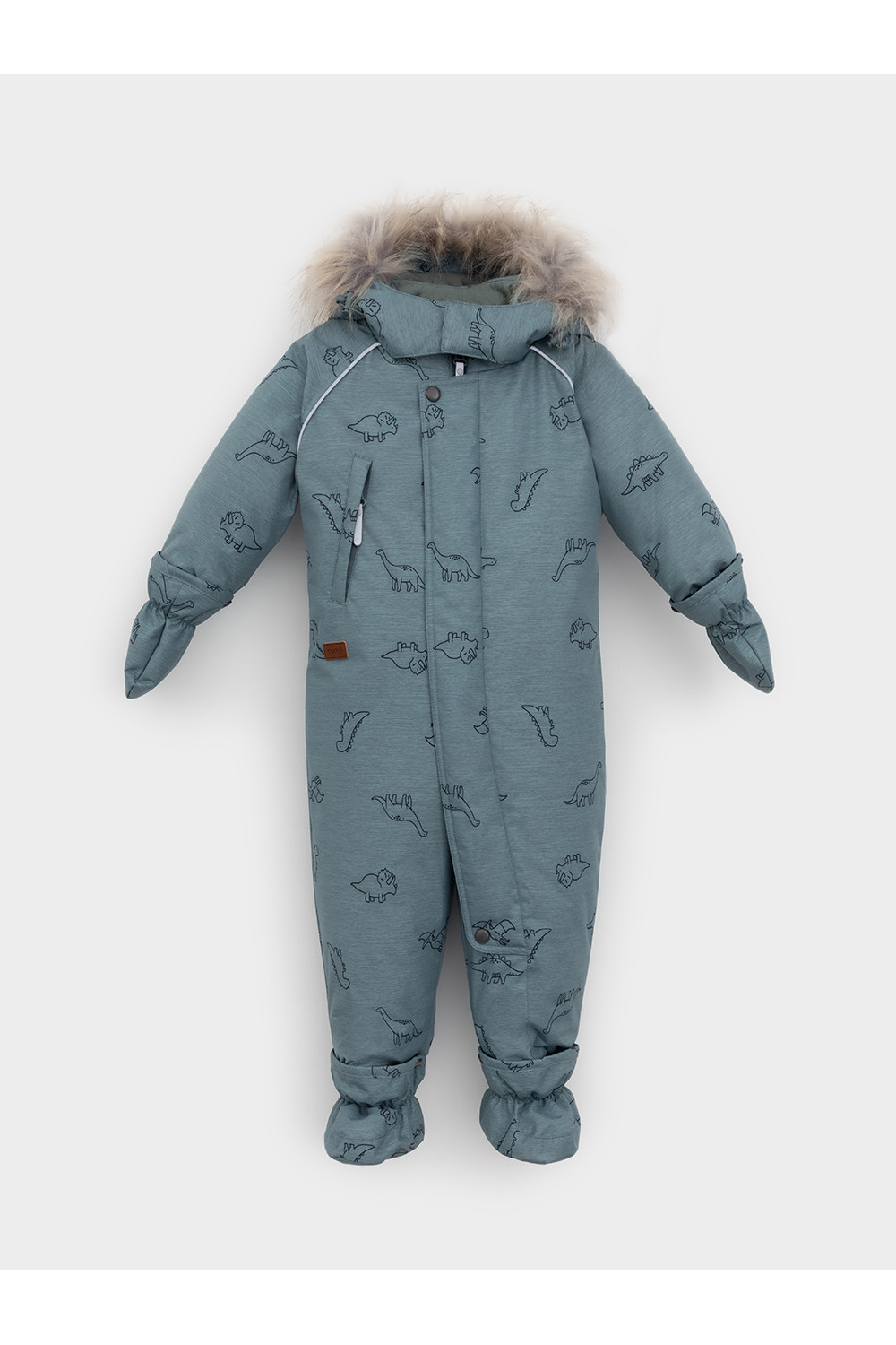 Зимний комбинезон ясельный с утеплителем SEE®: 300 г/м2. Выполнен из мембранной ткани с дополнительной тефлоновой обработкой, которая предохраняет изделие от загрязнений и отталкивает влагу. Подклад выполнен из 100% хлопка. Комбинезон застёгивается на молнию и внешнюю планку на липучках, предусмотрена защита подбородка. Несъёмный капюшон имеет эластичную утяжку со стопперами и отстёгивающийся мех на молнии. Резинка по спинке для лучшего прилегания. На груди карман на молнии. По рукавам и низу изделия эластичные манжеты, на ножках отстёгивающиеся силиконовые штрипки. В размерах 74-80 и 80-86 в комплекте идут рукавицы и пинетки. Во всех изделиях верхнего ассортимента для безопасности ребёнка предусмотрены светоотражающие элементы.