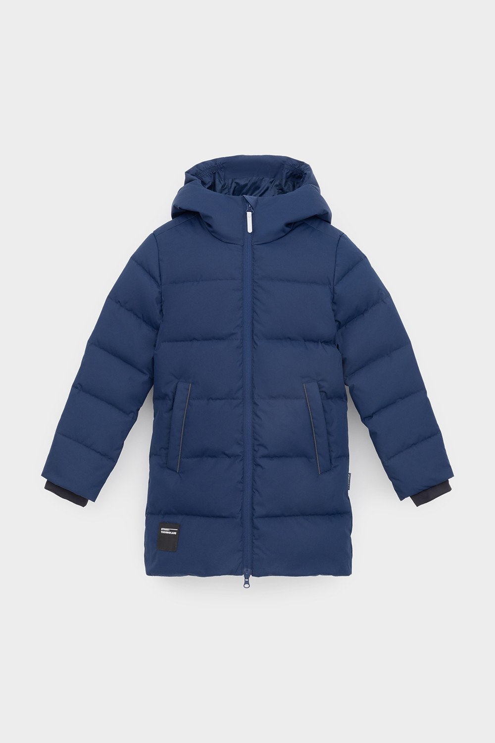 Пальто для мальчика с натуральным утеплителем из гипоаллергенного гусиного пуха (70%) и пера (30%).