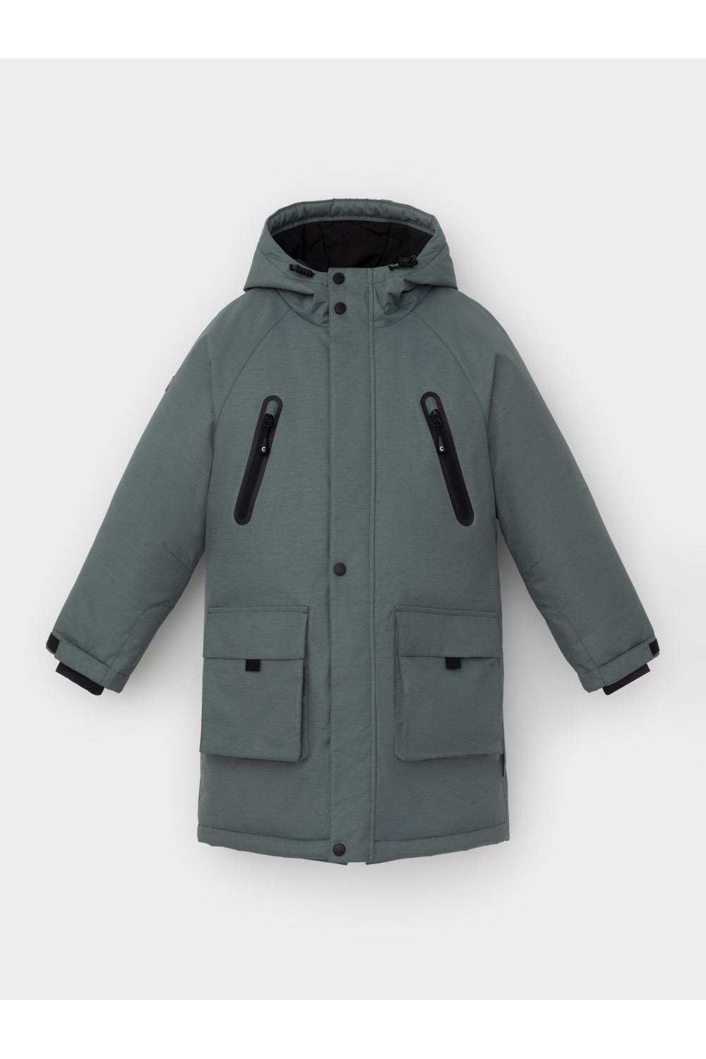 Зимняя парка для мальчика с утеплителем  Fellex®: 300 г/м2. Выполнена из мембранной ткани с дополнительной тефлоновой обработкой, которая предохраняет изделие от загрязнений и отталкивает влагу. Подклад выполнен из 100% полиэстера Tricot. Парка застёгивается на молнию и внешнюю планку с кнопками, предусмотрена защита подбородка. Вшитый капюшон затягивается на эластичную утяжку со стопперами и на шнур. На рукавах внутренние эластичные манжеты, ширина регулируется липучками. Два накладных кармана с клапанами по бокам и два кармана на груди. По талии эластичная утяжка со стопперами. Во всех изделиях верхнего ассортимента для безопасности ребёнка предусмотрены светоотражающие элементы.