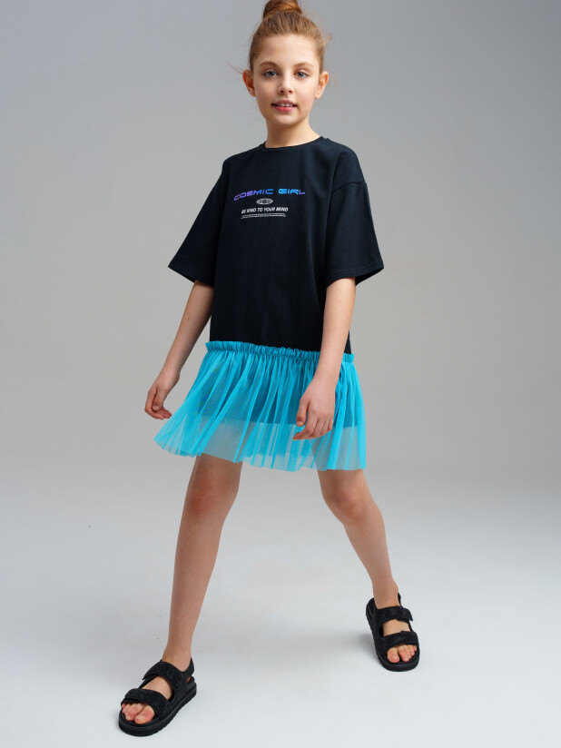 Платье для девочки подростка. Платье оверсайз из качественного и приятного на ощупь трикотажа джерси с высоким содержанием хлопка 95%. Благодаря наличию эластана в составе ткани изделие проще в уходе и держит форму. Декор из сетки