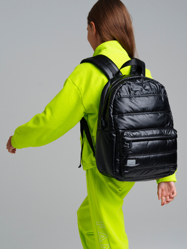 Рюкзак 40*30*15 см. Прямые широкие регулируемые лямки с мягкими вкладками. 1 основное отделение на молнии, внешний карман на молнии. Внутри: отсек для ноутбука, карман на молнии, 2 кармана без замка, карабин для крепления футляра/пенала/ключей. Усиленная спинка, дно и верхняя ручка. Светоотражающие элементы на переднем кармане и плечевых ремнях.