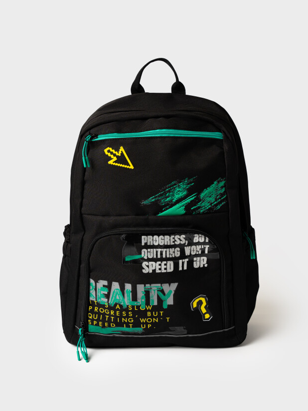 Легкий рюкзак с уплотненной вентилируемой спинкой для мальчика подростка. Модель выполнена из качественной и плотной водонепроницаемой ткани оксфорд со светоотражающим принтом. Молния имеет защитный клапан от попадания воды. Рюкзак для школы имеет одно отделение с различными карманами внутри для систематизации школьных принадлежностей. Спереди два вместительных кармана на молнии. По бокам также есть карманы. Широкие мягкие вентилируемые лямки регулируются по высоте. У рюкзака есть ручка для ношения в руке и для того, чтобы его можно было вешать на вешалку. Ранец имеет светоотражающие детали на лямках и спереди. Рюкзак в школу можно дополнить мешком для обуви и пеналом в том же дизайне. Размер рюкзака: 32*46*20 см. Вес рюкзака: 525 гр